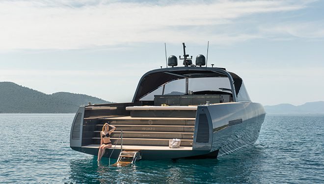 Functionality and a unique design that meets different demandsA functional and unique design that meets different demands; think of it like this, in the daily use (‘day-boat’) of the 1-cabin version, you can easily host your guests up to 12 people on the boat with extremely large social sharing areas both indoors and outdoors, and you can spend time together all day long in the dining area for 10 people, including sunbathing areas, bar, grill, barbecue and even Japan-specific cooking technique (Teppanyaki) on the main deck, a fun and speed boat that complements its stylish design with comfort.