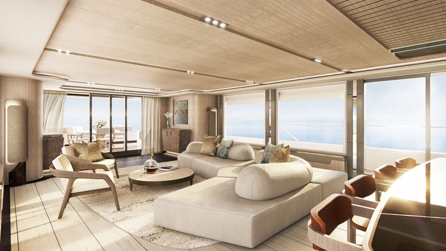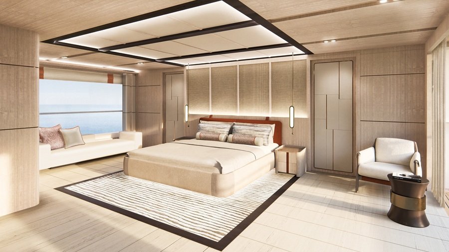 Öne çıkan detaylar arasında, ana güvertede yer alan 50 metrekarelik sahip süiti, spa ilhamlı banyosu ve sürgülü balkonuyla öne çıkarken; alt güvertede yer alan 4 VIP kabin, tüm misafirler için eşit konfor sunuyor.